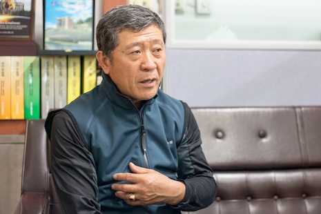 Son Chang-kyung, 64, speaks to reporters in Seoul (Photo by Douglas Vautour)